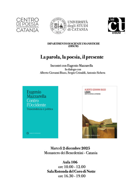 Dialogheranno con lui tre docenti del Disum: Alberto Giovanni Biuso, Sergio Cristaldi, Antonio Sichera.