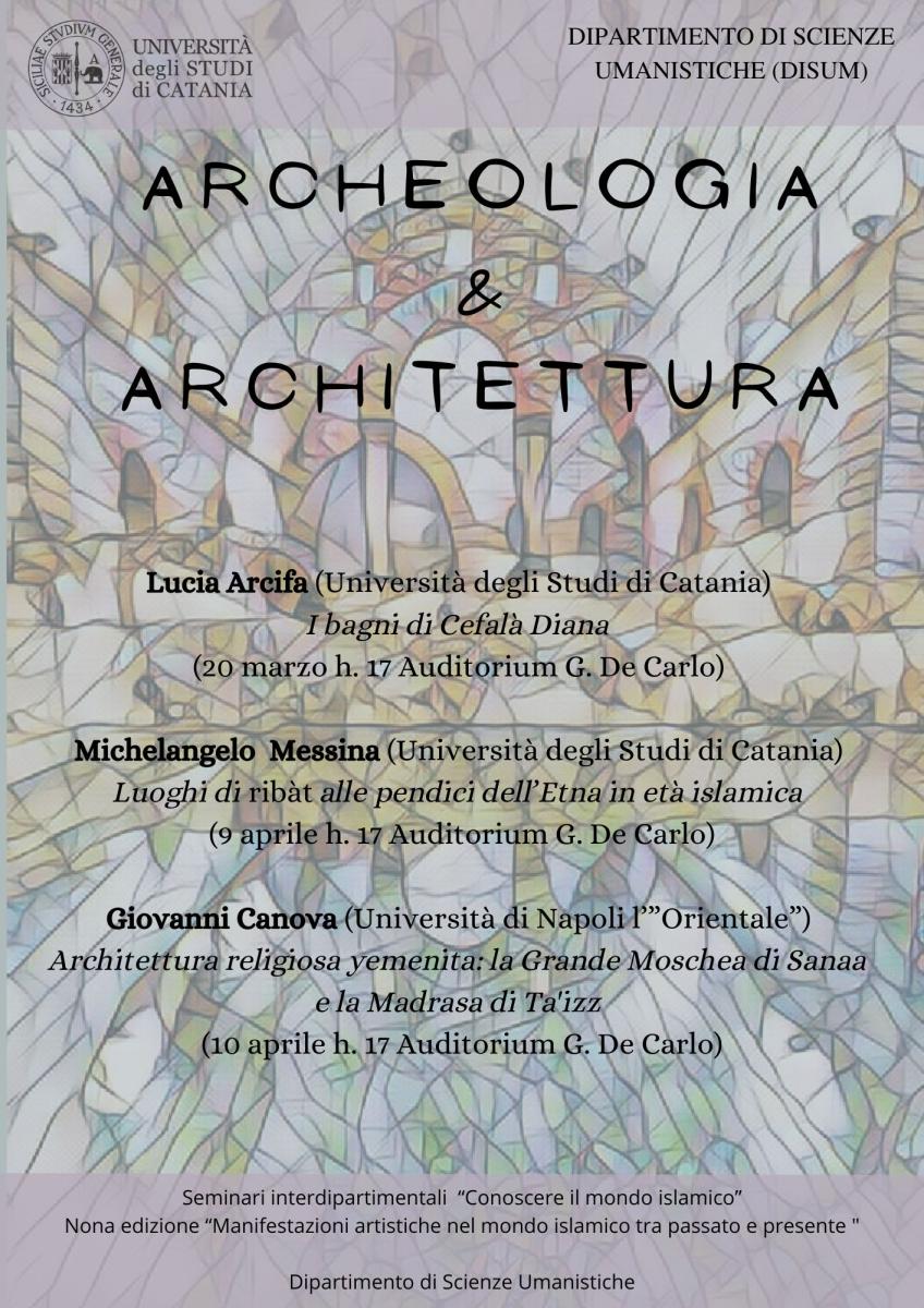 Michelangelo Messina (Università degli Studi di Catania): Luoghi di ribàt alle pendici dell’Etna in età islamica (9 aprile) Giovanni Canova (Università di Napoli l’“Orientale”): Architettura religiosa yemenita: la Grande Moschea di Sanaa e la Madrasa di Ta'izz (10 aprile)