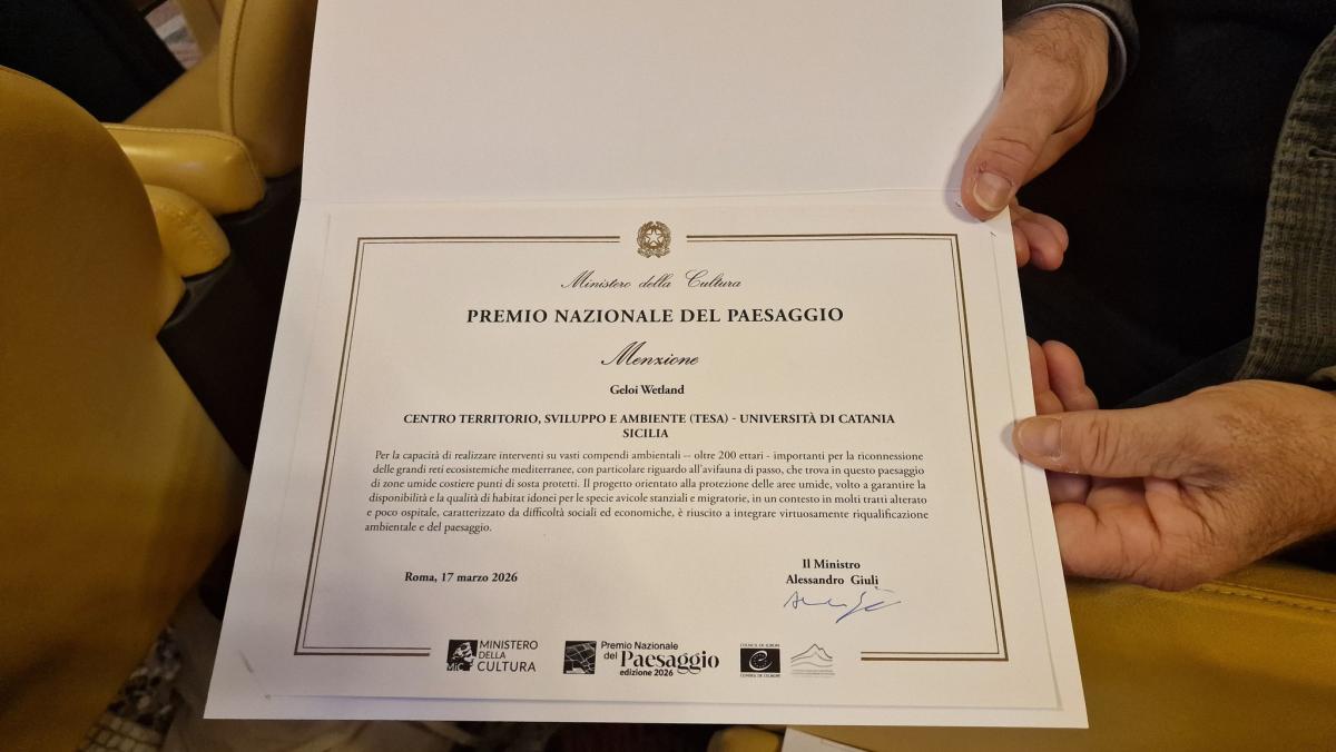 Il 17 Marzo il progetto di riqualificazione del paesaggio e di riparazione ambientale-sociale-ecologica Geloi wetland, creato da alcuni anni nella piana di Gela da operatori ambientali locali e con il sostegno della Fondazione tedesca “Stiftung Pro Artenviefalt”, è stato presentato dal prof. Alessandro Lutri -docente di discipline antropologiche presso il Dipartimento di Scienze umanistiche e membro del Centro interdipartimentale Territorio, sviluppo e Ambiente (TeSA)-, al Premio nazionale del paesaggio promosso dal Ministero della Cultura, ricevendo una menzione speciale dalla Commissione tecnica presso il Ministero, tra i ventisette diversi progetti selezionati.