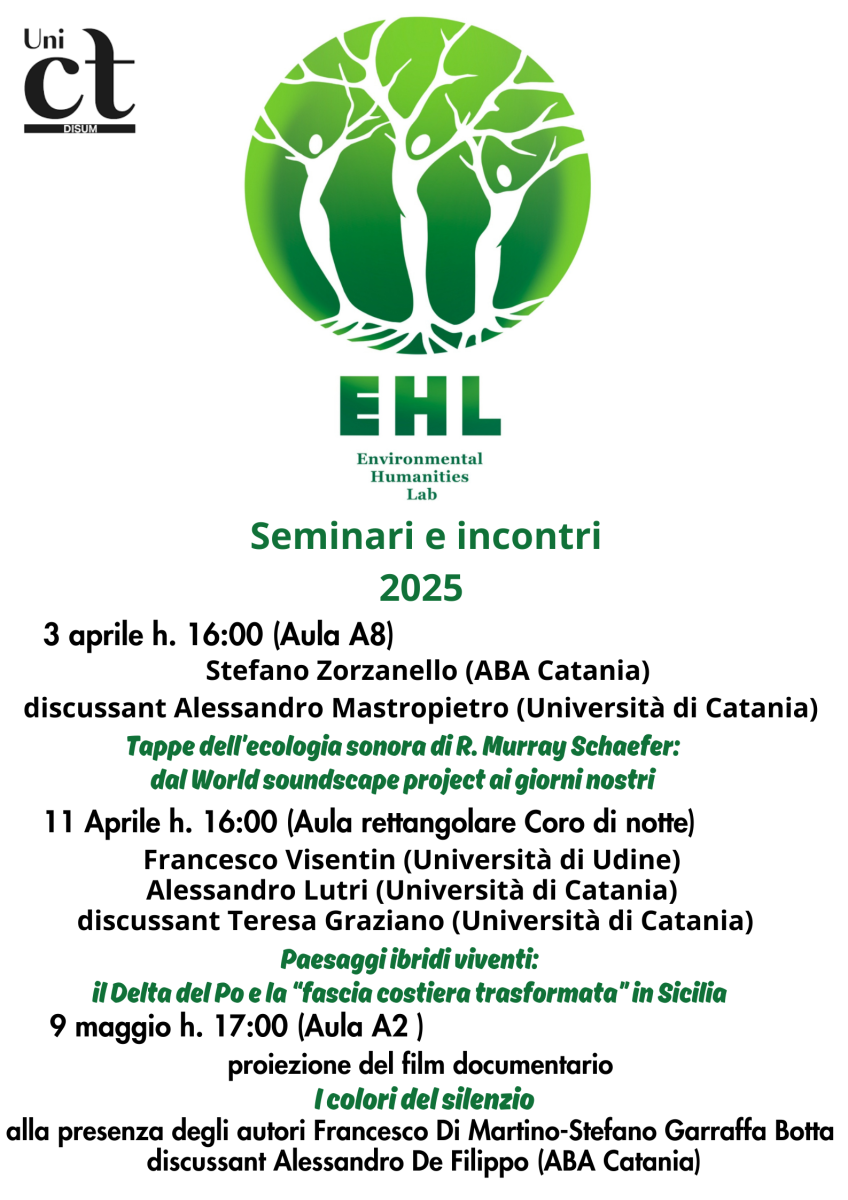 prenderanno avvio le attività didattiche e di ricerca dell'Environmental Humanities Lab., coordinate da Alessandro Lutri, Melania Nucifora e Salvatore Adorno, alle quali siete tutti invitati a partecipare.