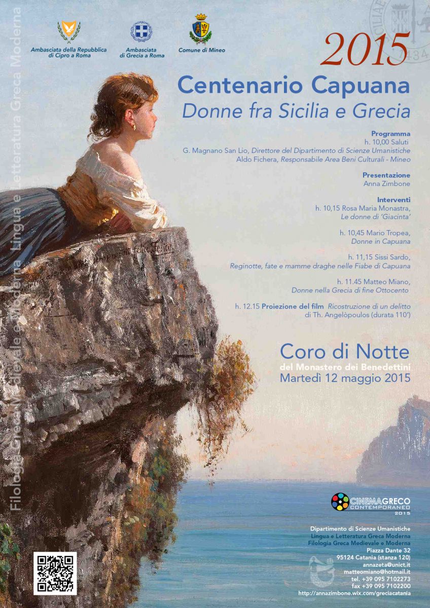 Martedì 12.5.2015 alle 10,00 nel Coro di Notte si svolgerà un Convegno dal titolo Centenario Capuana. Donne fra Sicilia e Grecia.