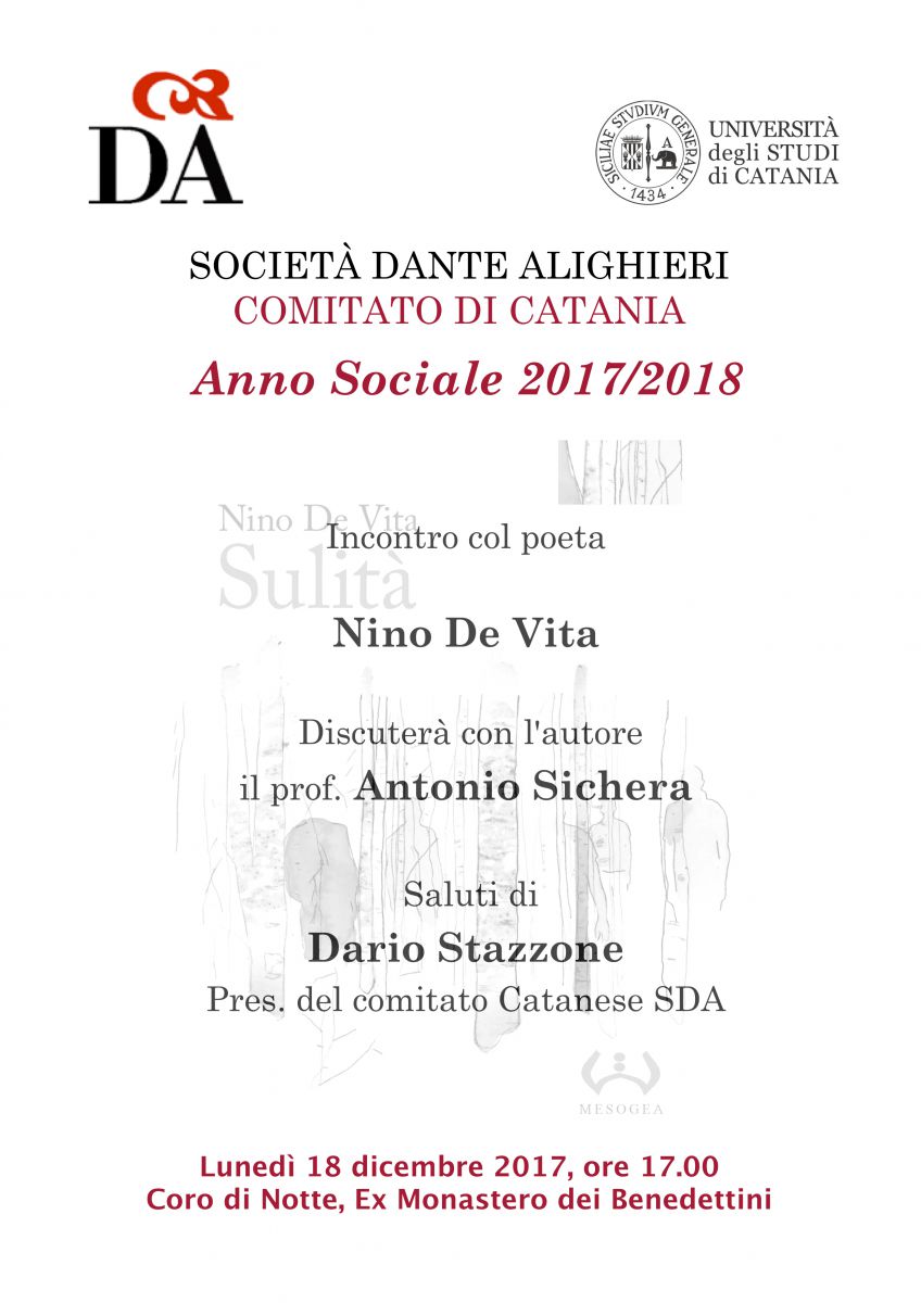 Lunedì 18.12.2017 alle 17,00 nel Coro di Notte Antonio Sichera dialogherà con il poeta Nino De Vita.