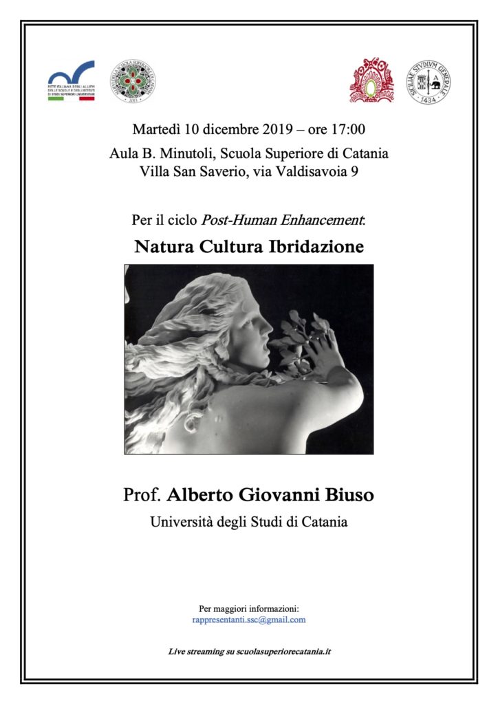 Martedì 10.12.2019 alle 17,00 nell’aula Minutoli della Scuola Superiore di Catania svolgerò una lezione dal titolo Natura Cultura Ibridazione.