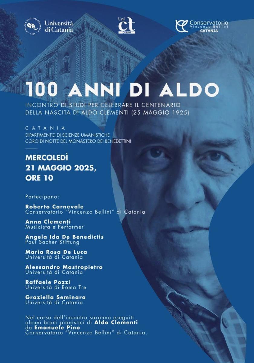 In occasione del centenario della nascita di Aldo Clementi (25 maggio 1925), tra le figure più significative del panorama musicale del Novecento italiano, mercoledì 21 maggio, alle 10:00 nel Coro di notte del Monastero dei benedettini, avrà luogo l’incontro di studi “100 Anni di Aldo”, dedicato alla riscoperta e valorizzazione della sua opera.