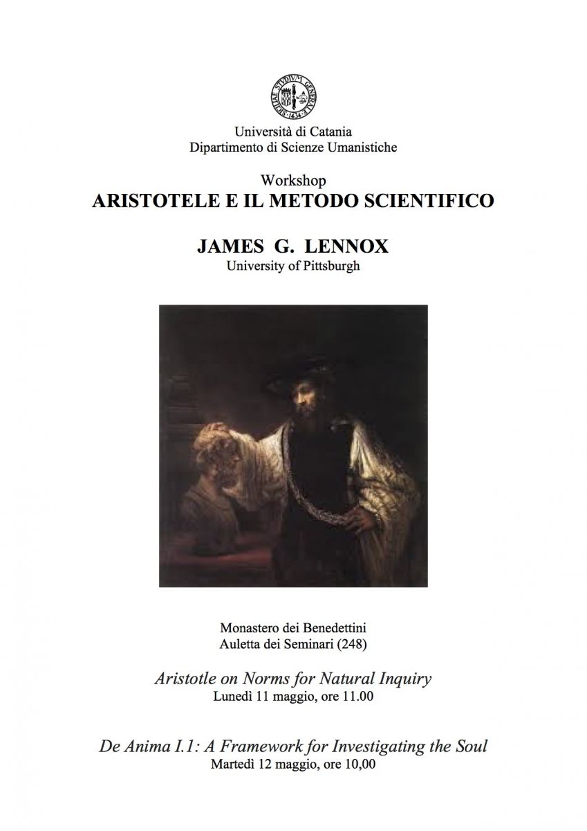 Lunedì 11 e martedì 12.5.2015 nell'auletta seminari (248) James G. Lennox (Università di Pittsburgh) terrà due seminari dai titoli: