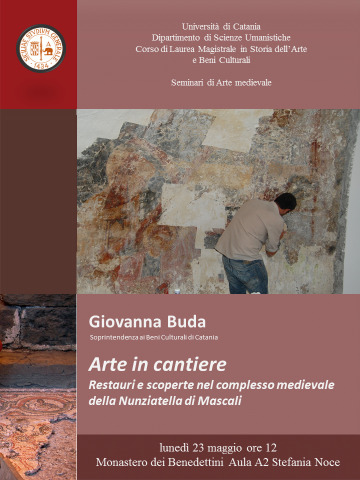Lunedì 23.5.2016 alle 12,00 nell'aula A2 Giovanna Buda (Soprintendenza ai Beni Culturali di Catania) terrà una lezione dal titolo Arte in cantiere. Restauri e scoperte nel complesso medievale della Nunziatella di Mascali.