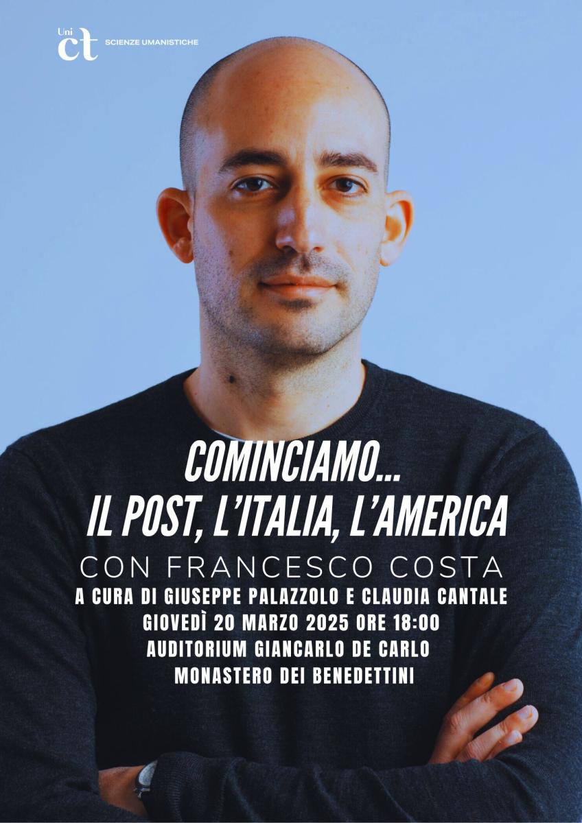 Giovedì 20 marzo 2025 ore 18:00, presso l'Auditorium Giancarlo De Carlo del Dipartimento di Scienze Umanistiche, Francesco Costa incontra il suo pubblico per parlare dei grandi cambiamenti politici mondiali, che coinvolgono l’Italia, l’Europa, gli USA di Donald Trump. Siamo di fronte a una svolta epocale nel modo stesso di concepire l’Occidente, il suo ruolo, la sua storia, i suoi orizzonti di senso.