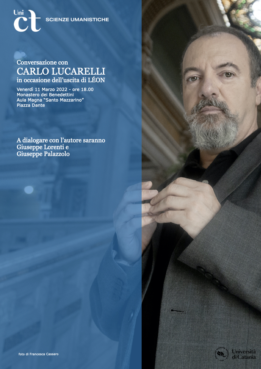 Venerdì 11 marzo 2022 alle 18, nell'aula magna "Santo Mazzarino" del Monastero dei Benedettini, lo scrittore, sceneggiatore e conduttore televisivo Carlo Lucarelli presenta il suo ultimo romanzo "Léon" (Einaudi, 2021), in un incontro organizzato dal Dipartimento di Scienze umanistiche dell'Università di Catania.