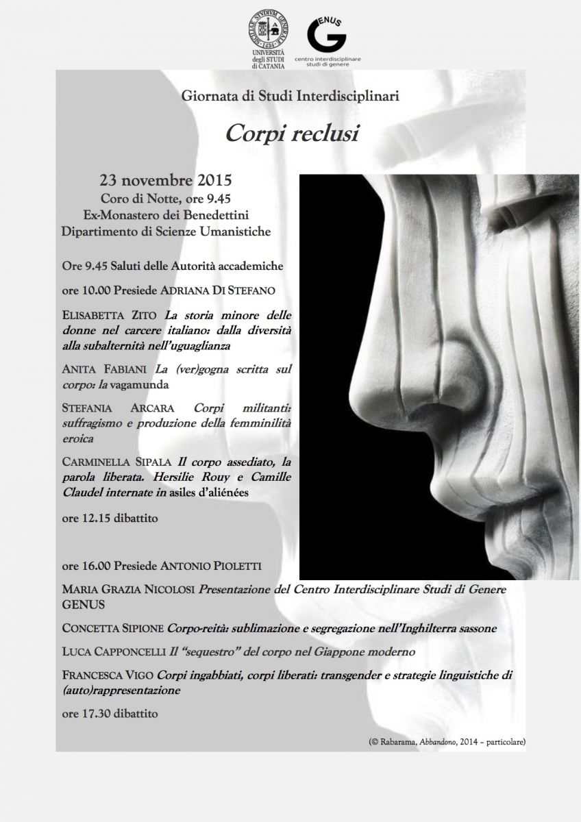 Corpi reclusi (23.11.2015) Lunedì 23.11.2015 dalle 9,45 nel Coro di Notte si terrà una Giornata di Studi Interdisciplinari dal titolo Corpi reclusi. Programma completo della Giornata di Studi (pdf) Condividi Facebook Twitter Whatsapp Telegram Email