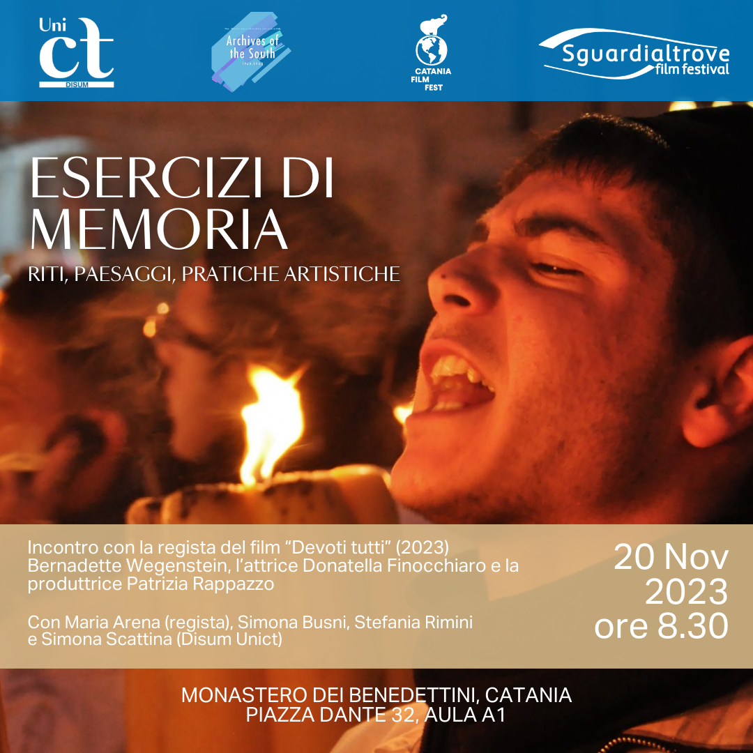 Lunedì 20 novembre 2023 dalle ore 8:30 alle 10:00, presso l'aula 1 del Monastero dei Benedettini, si terrà il Workshop sul film Devoti tutti (Italia, Austria, Usa 2023) di Bernadette Wegenstein.