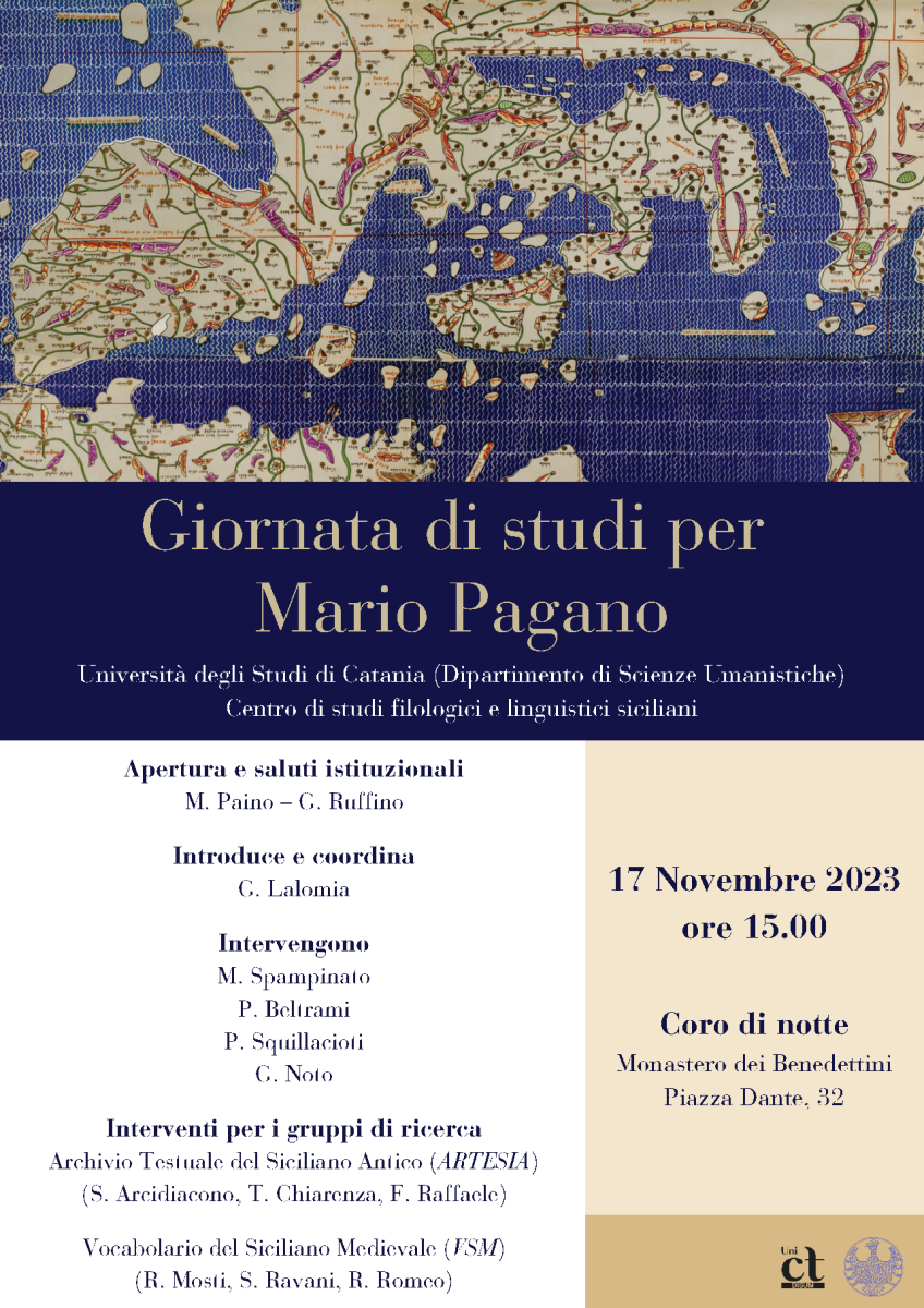 Il prossimo 17 novembre dalle ore 15:00, presso il Coro di Notte del Monastero dei Benedettini, si svolgerà una giornata di studi per il Prof. Mario Pagano.