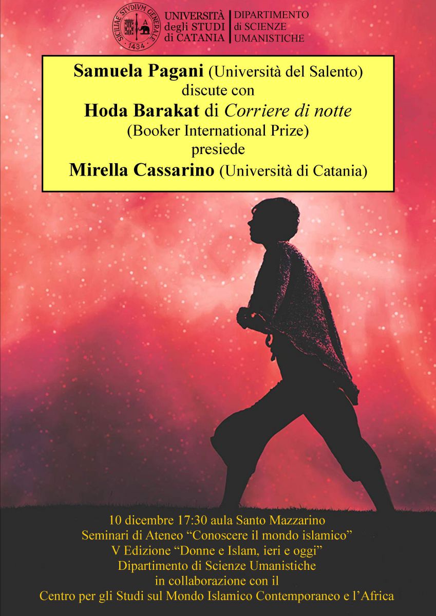 Martedì 10.12.2019 alle 17,30 in Aula Magna Samuela Pagani (Università del Salento) presenterà insieme all'autrice il libro Corriere di notte di Hoda Barakat, scrittrice libanese recentemente insignita del prestigioso Booker International Prize.