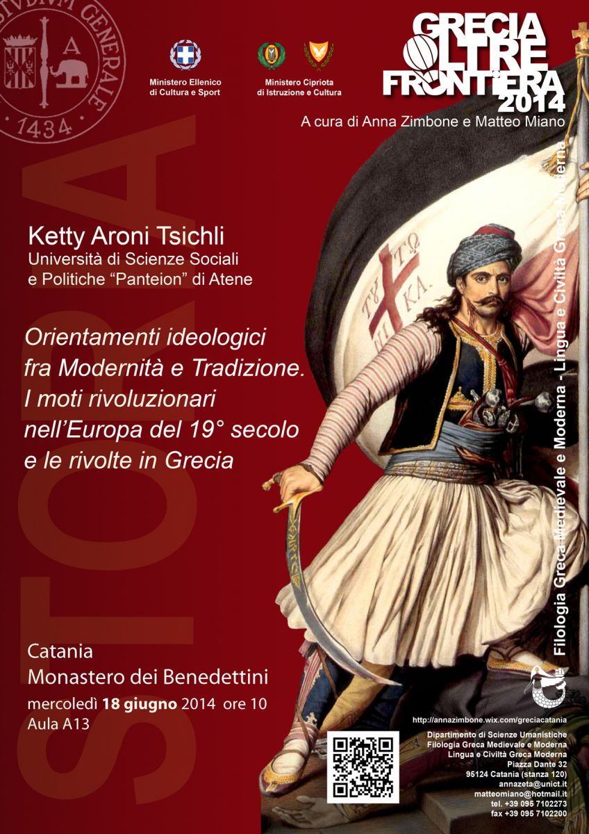 Mercoledì 18.6.2014 alle 10,00 nell'aula A13 Ketty Aroni Tsichli (Università di Atene) terrà un seminario dal titolo Orientamenti ideologici tra modernità e tradizione. I moti rivoluzionari nell'Europa del XIX secolo e le rivolte in Grecia