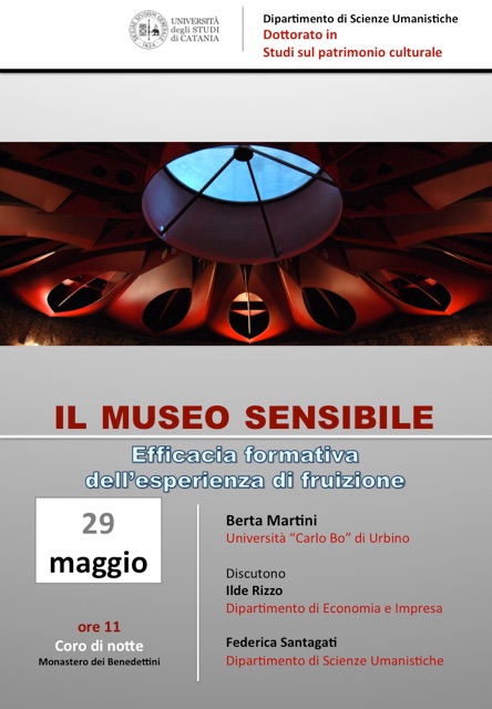 Lunedì 29.5.2017 alle 11,00 nel Coro di Notte Berta Martini (Università "Carlo Bo" di Urbino) terrà un seminario dal titolo Il museo sensibile. Efficacia formativa dell'esperienza di fruizione.