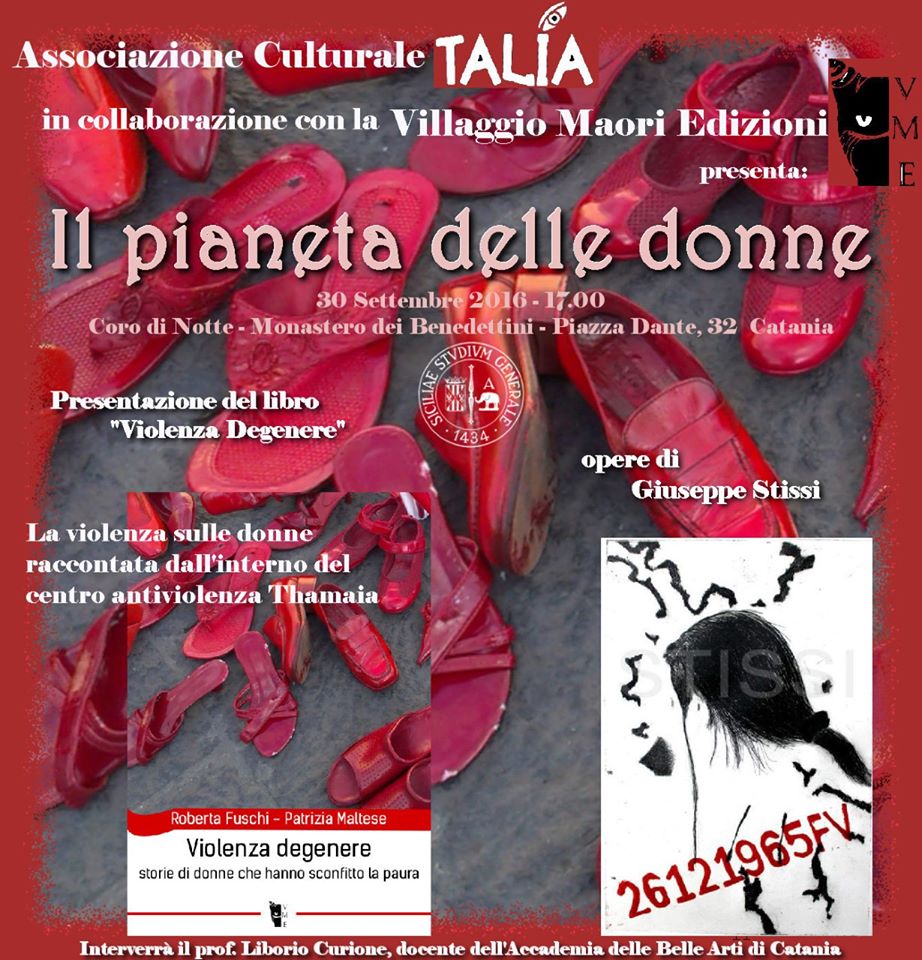 Il pianeta delle donne Venerdì 30.9.2016 alle 17,00 nel Coro di Notte sarà presentato il libro di Roberta Fuschi e Matrizia Maltese Violenza Degenere (Villaggio Maori Edizioni, 2015). Condividi Facebook Twitter Whatsapp Telegram Email