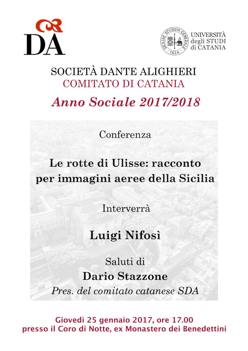 Giovedì 25.1.2018 alle 17,00 nel Coro di Notte si svolgerà una conferenza dal titolo Le rotte di Ulisse: racconto per immagini aeree della Sicilia.