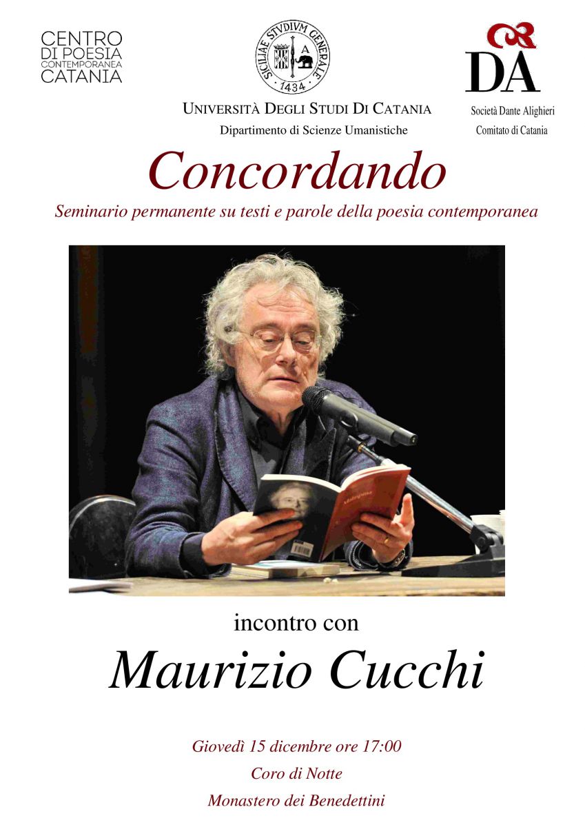 Maurizio Cucchi Giovedì 15.12.2016 alle 17,00 nel Coro di Notte si svolgerà un incontro con Maurizio Cucchi. L'iniziativa fa parte del ciclo Concordando. Seminario permanente su testi e parole della poesia contemporanea. Condividi Facebook Twitter Whatsapp Telegram Email