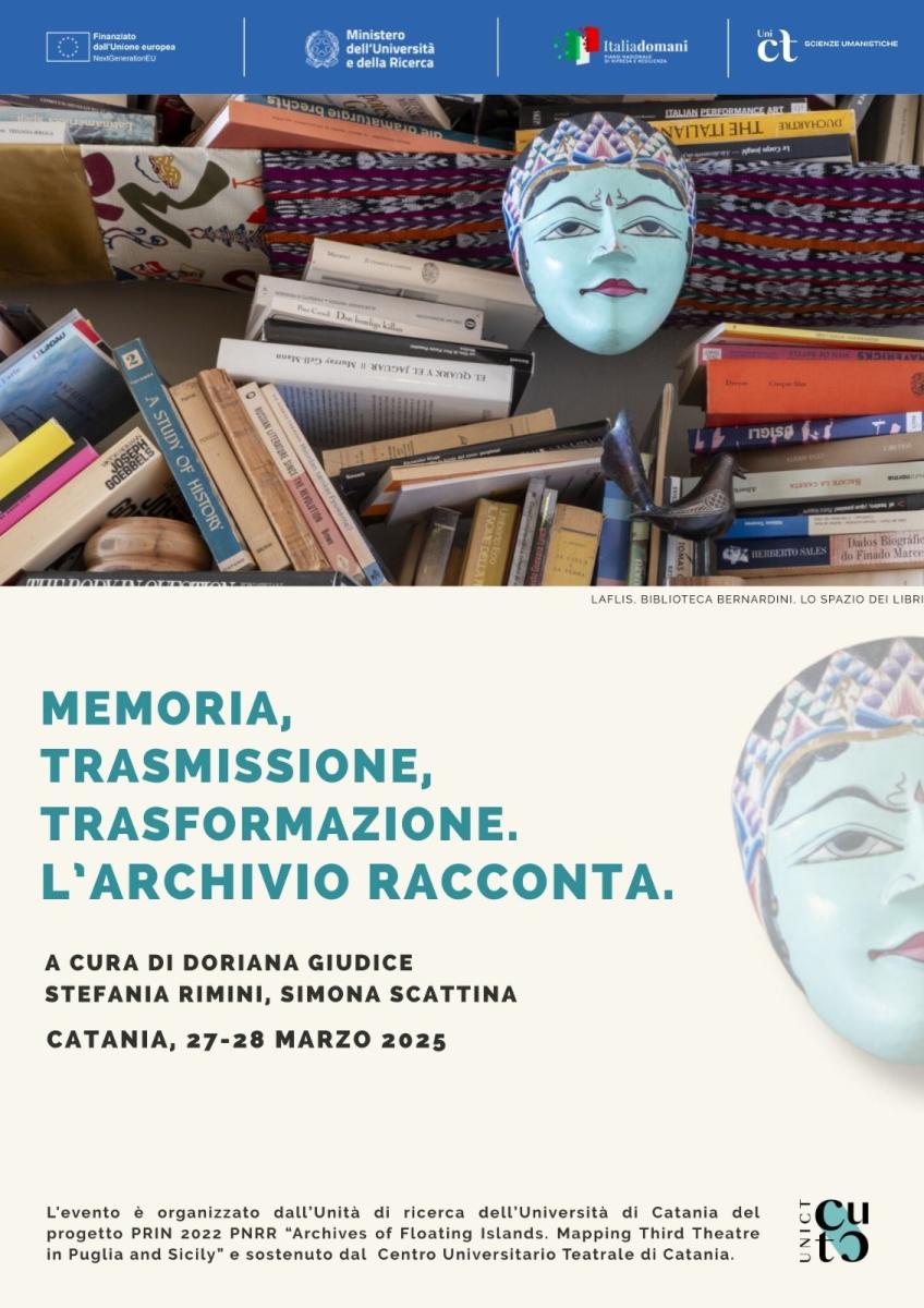 L’unità di ricerca dell’Università di Catania del progetto PRIN 2022 PNRR “Archives of Floating Islands. Mapping Third Theatre in Puglia and Sicily promuove due Giornate di studio dal titolo “Memoria, Trasmissione, Trasformazione. L’archivio racconta” che si terranno il 27 e il 28 marzo.
