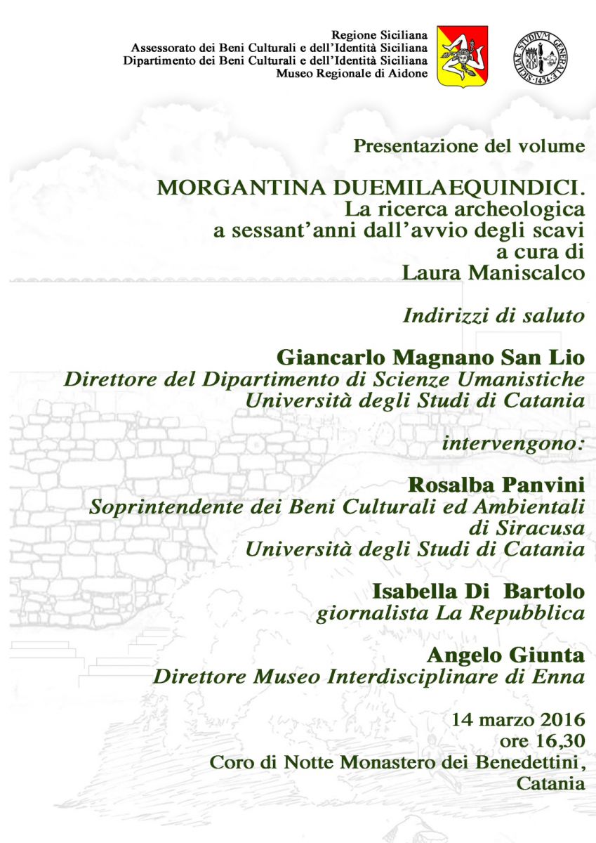 Morgantina duemilaquindici Lunedì 14.3.2016 alle 16,30 nel Coro di Notte sarà presentato il volume a cura di Laura Maniscalco Morgantina duemilaquindici. La ricerca archeologica a sessant'anni dall'avvio degli scavi. Condividi Facebook Twitter Whatsapp Telegram Email