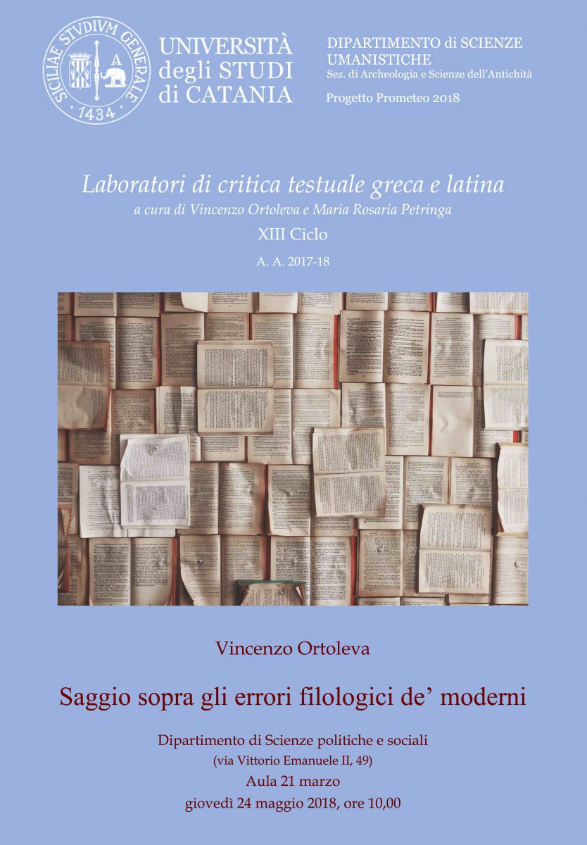 Giovedì 24.5.2018 alle 10,00 Vincenzo Ortoleva terrà una lezione dal titolo Saggio sopra gli errori filologici de' moderni.