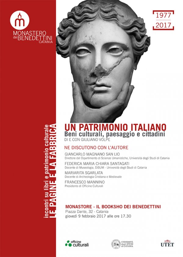 Giovedì 9.2.2017 alle 17,30 nel Monastore - il bookshop dei Benedettini sarà presentato il libro di Giuliano Volpe Un patrimonio italiano. Beni culturali, paesaggio e cittadini (Utet, 2016).