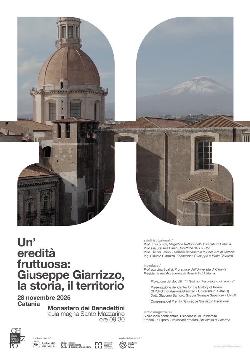 Venerdì 28 novembre 2025, alle 9:30, presso l'Aula Magna "Santo Mazzarino" del Monastero dei Benedettini, si terrà una giornata dedicata a Giuseppe Giarrizzo (1927-2015), nel decennale della sua scomparsa.