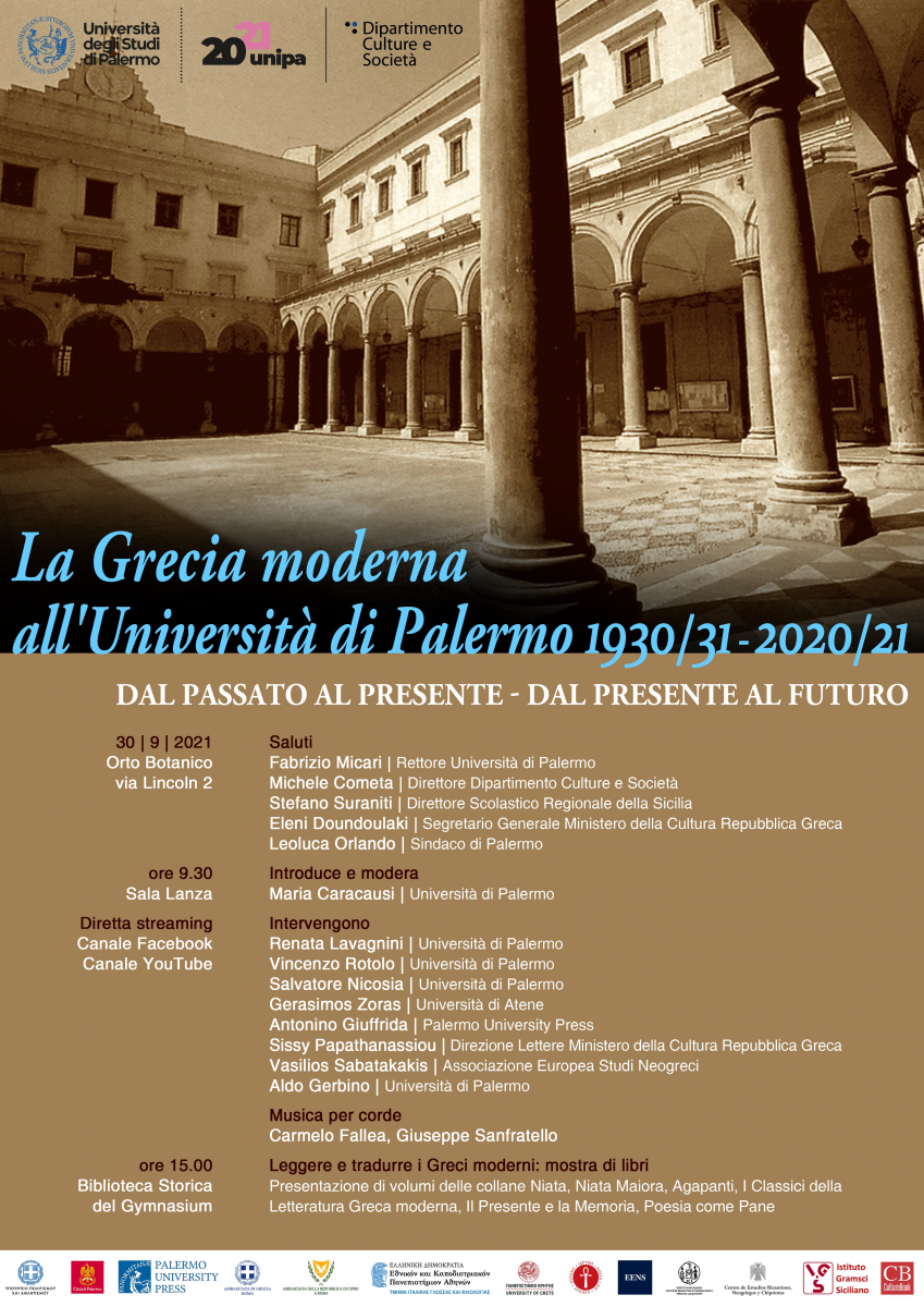 Il dottor Giuseppe Sanfratello, etnomusicologo e dottorando in Scienze per il Patrimonio e la Produzione Culturale (XXXV ciclo), è stato invitato a partecipare alla giornata celebrativa per i 90 anni dalla fondazione della cattedra di Lingua e Letteratura Neogreca presso l'Università degli Studi di Palermo, durante la quale si è esibito in concerto eseguendo alla chitarra alcuni brani strumentali di musica greca moderna, accompagnato da un ex collega violinista. L'evento si è svolto il 30 settembre 2021 e ha avuto per tema “La Grecia moderna all’Università di Palermo 1930/31 - 2020/21”.