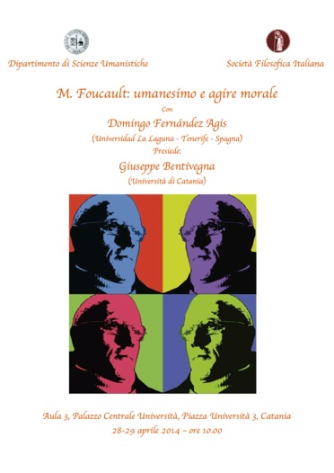 Il 28 e 29 aprile 2014 alle 10,00 nell'Aula 3 del Palazzo Centrale Domingo Fernàndez Agàs (Universidad La Laguna di Tenerife) terrà due seminari dal titolo: Michel Foucault. Umanesimo e agire morale.