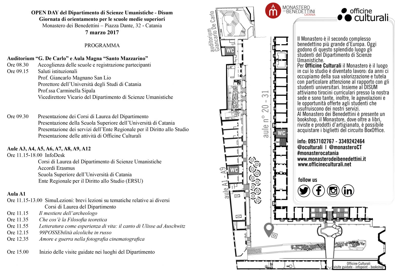 In questa giornata vogliamo comunicare agli studenti il valore di ciò che tutto il Dipartimento di Scienze Umanistiche può offrire, nella varietà dei suoi corsi e nell'organicità della sua struttura, per la formazione dei giovani del nostro territorio.
