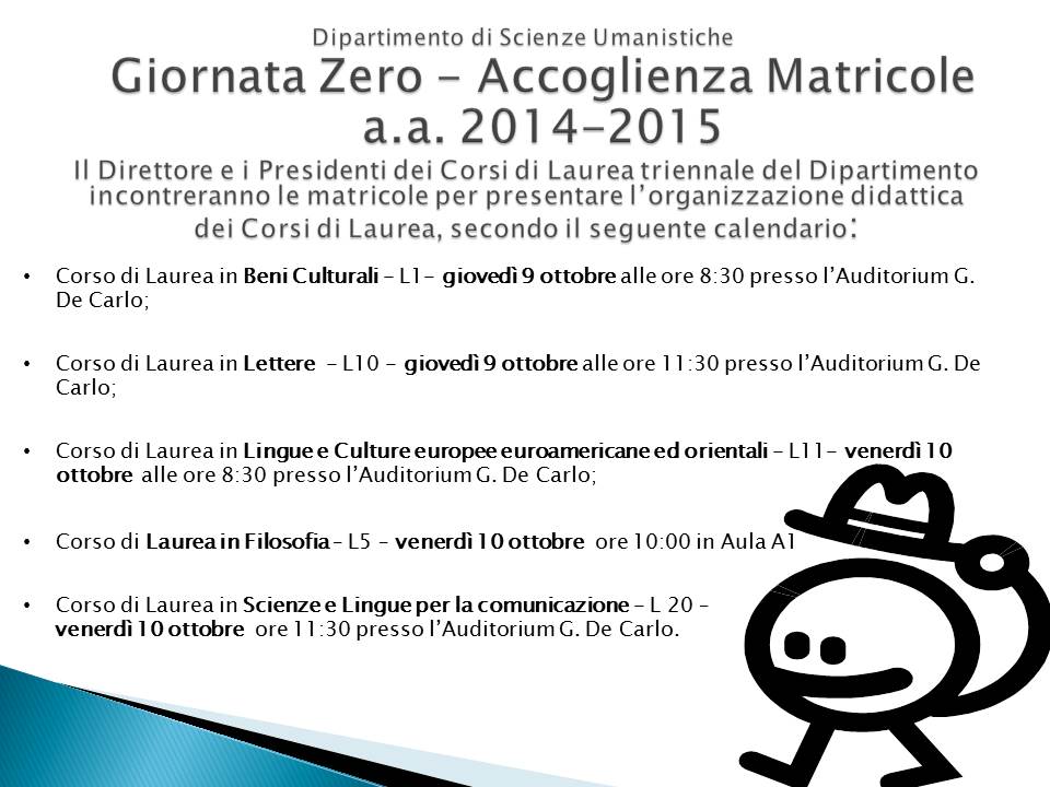 Incontri con gli studenti iscritti al Primo anno (9-10.10.2014)