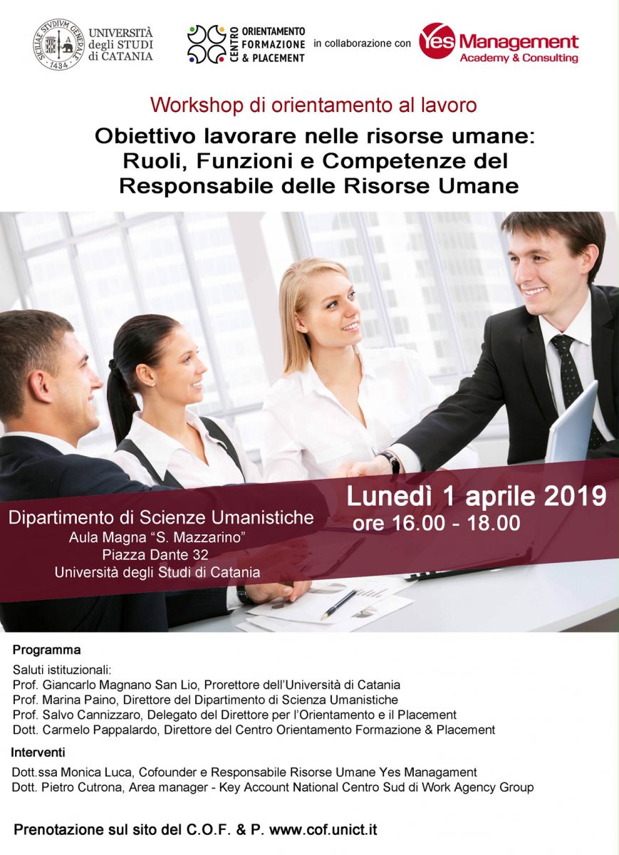 Lunedì 1.4.2019 alle 16,00 in Aula Magna si svolgerà un Workshop di orientamento al lavoro, organizzato dal Disum e dal COF.